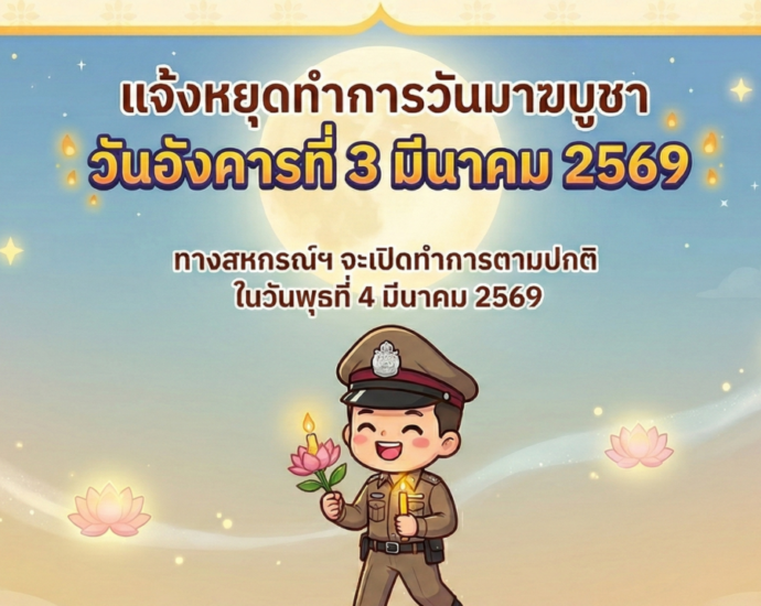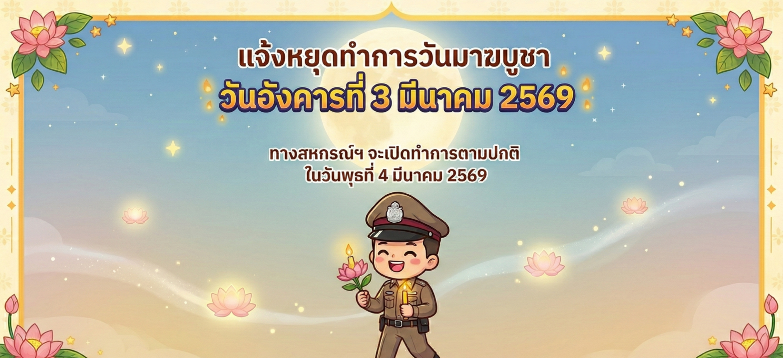 แจ้งหยุดทำการ วันอังคารที่ 3 มีนาคม 2569 เปิดทำการในวันที่ 4 มีนาคม 2569 สหกรณ์ออมทรัพย์ตำรวจภูธรจังหวัดขอนแก่นจำกัด