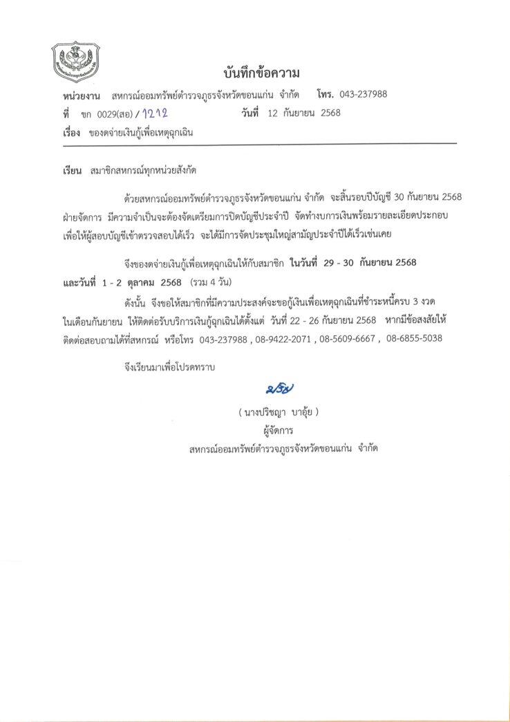 ในการติดต่อทำธุรกรรมกับสหกรณ์ต้องนำบัตรประชาชนมาด้วยทุกครั้ง !! ไม่สามารถใช้บัตรข้าราชการในการติดต่อทำธุรกรรมได้ แจ้งให้สมาชิกทุกคนรับทราบ